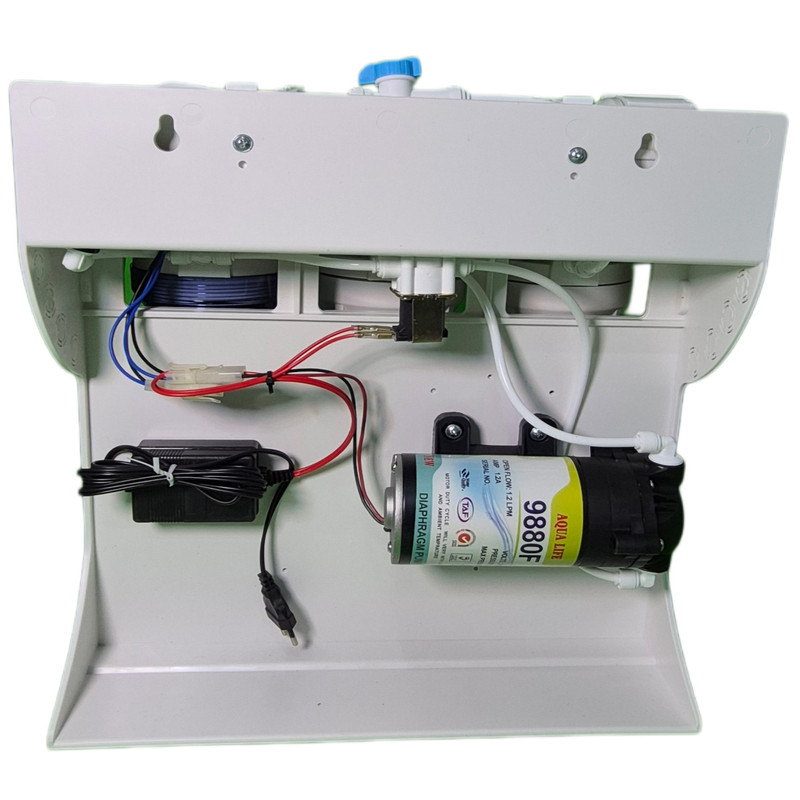 دستگاه تصفیه آب آکوالایف مدل AL-6 یک سیستم حرفهای تصفیه آب مبتنی بر تکنولوژی اسمز معکوس است که با ۶ مرحله فیلتراسیون استاندارد، توانایی حذف انواع آلودگیهای فیزیکی، شیمیایی و میکروبی را دارد و در نهایت آبی سالم، سبک و خوشطعم جهت مصرف روزانه تولید میکند. شاسی این دستگاه از پلاستیک ABS مقاوم و مرغوب ساخته شده است. این نوع شاسی برخلاف شاسیهای فلزی در برابر رطوبت کاملاً مقاوم است، طول عمر بیشتری دارد، وزن دستگاه را سبکتر و حمل آن را آسانتر میکند. هوزینگهای این مدل، هوزینگ تک اورینگ هستند که تحمل فشار بالایی دارند. این دستگاه دارای ۶ مرحله فیلتراسیون کامل و استاندارد است. فیلتر PPحذف گلولای، شن، ماسه، رسوبات و ذرات معلق تا 5 میکرون، فیلتر UDFحذف بو، مزه بد، کلر آزاد و مواد شیمیایی آلی، فیلتر CTO تصفیه کاملتر کلر و مواد شیمیایی و شفافیت بهتر آب، فیلتر ممبران حذف نیترات، نیتریت، آرسنیک، سختی، فلزات سنگین و املاح محلول، فیلتر پستکربن بهبود طعم و بوی آب پس از ذخیره در مخزن، فیلتر مینرال بازگرداندن املاح مفید مانند کلسیم و منیزیم برای بهبود کیفیت و گوارایی آب را بر عهده دارند. این مدل مجهز به پمپ قوی و کمصدا است ودر کنار پمپ، یک گیج فشارنصب شده که میزان فشار پمپ را نشان میدهد و وضعیت سلامت عملکرد سیستم را مشخص میکند. برای ایمنی بیشتر و عملکرد اتوماتیک، دستگاه به دو سوییچ مجهز است. سوییچ فشار بالا هنگام پر شدن مخزن، بهطور خودکار دستگاه را خاموش میکند. سوییچ فشار پایین در صورت قطع شدن آب ورودی، عملکرد دستگاه را متوقف میکند. این دستگاه دارای شیربرقی است که جریان آب ورودی به سیستم را بهصورت کاملاً اتوماتیک مدیریت میکند و از هدررفت آب جلوگیری میکند. این دستگاه همراه با بسته کامل نصب و لوازم جانبی عرضه میشود که شامل مخزن ۴ گالن تانک مکس با دیافراگم بهداشتی، ست کامل فیلترهای ۱، ۲ و ۳، فیلتر ممبران 13 لایه فیلمتک، شیر برداشت نیمهاهرمی، شیر ورودی و سهراهی، آچار هوزینگ، بست فاضلاب،شلنگ وشیر مخزن میباشد. اتصالات استفاده شده از نوع کیفیت بالا هستند و طول عمر زیادی دارند. نصب دستگاه بهصورت زیرسینکی انجام میشود و طراحی استاندارد آن باعث شده برای اکثر کابینتها و آشپزخانهها مناسب باشد. این دستگاه برای مصارف خانگی و دفاتر گزینهای ایدهآل است.
