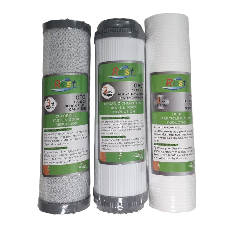پک سهمرحلهای تصفیه آب رست مجموعهای کامل از فیلترهای استاندارد است که برای تمامی دستگاههای تصفیه آب هوزینگی قابل استفاده میباشد. این پک با طراحی دقیق و استفاده از مواد اولیه باکیفیت، سه مرحله اصلی تصفیه را پوشش میدهد و آب آشامیدنی سالمتر و خوشطعمتری در اختیار مصرفکننده قرار میدهد. در مرحله نخست، فیلتر الیافی پلیپروپیلن قرار دارد. این فیلتر وظیفه دارد ذرات معلق، شن، ماسه، گلولای و رسوبات موجود در آب را حذف کند و با ظرفیت بالای جذب خود، مسیر را برای مراحل بعدی آماده سازد. مرحله دوم شامل فیلتر کربن فعال است که از کربن ۱۰۰٪ گیاهی ساخته شده. این فیلتر توانایی بالایی در جذب کلر، مواد شیمیایی، ترکیبات آلی و بوهای نامطبوع دارد و باعث بهبود قابل توجه طعم و بوی آب میشود. در مرحله سوم نیز فیلتر کربن بلاک از کربن گیاهی قرار گرفته است. این فیلتر با ساختار متراکم خود باقیمانده کلر و ترکیبات آلی را با دقت بیشتری حذف کرده و آب را برای ورود به مراحل پیشرفتهتر تصفیه آماده میکند. به طور کلی، پک سهمرحلهای رست با ترکیب فیلتر الیافی پلیپروپیلن و فیلترهای کربنی، انتخابی مطمئن برای کسانی است که به دنبال آب آشامیدنی سالم، بدون بو و با طعم طبیعی هستند. طول عمر مفید فیلتر در این نوع: فیلتر اول 3 ماه، فیلتر دوم و سوم 12 ماه میباشد.